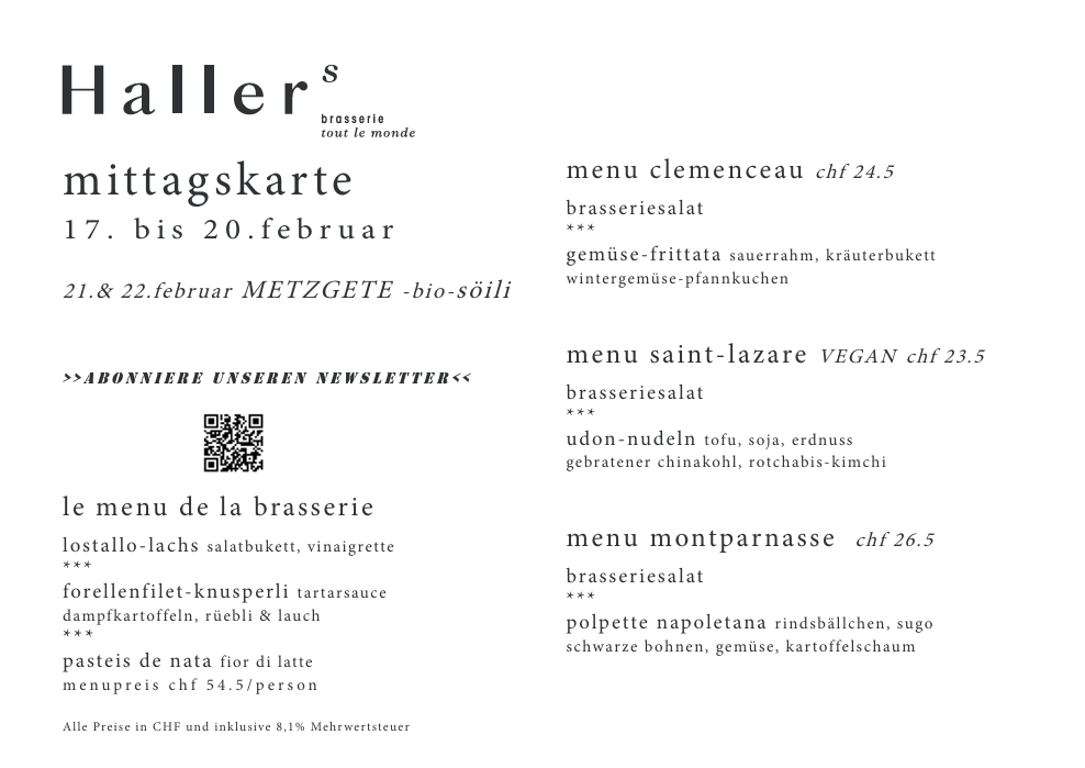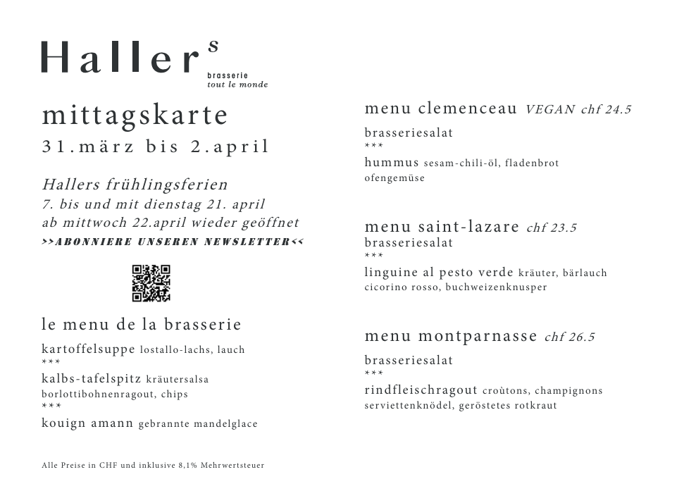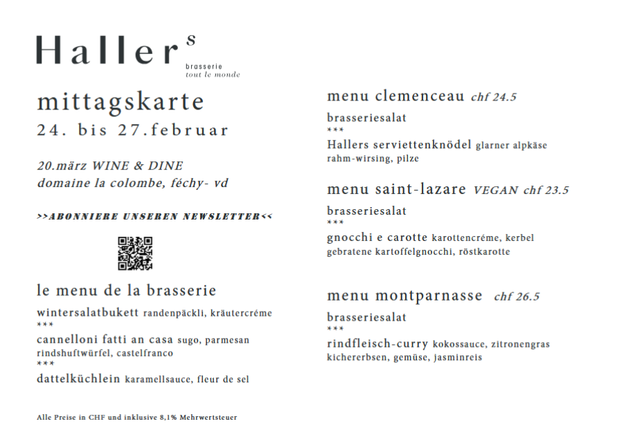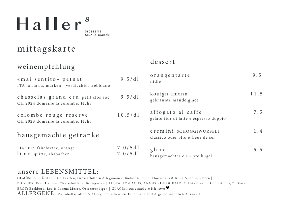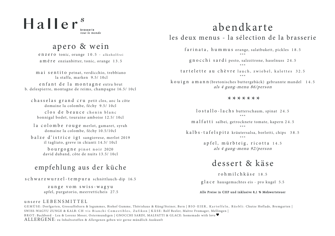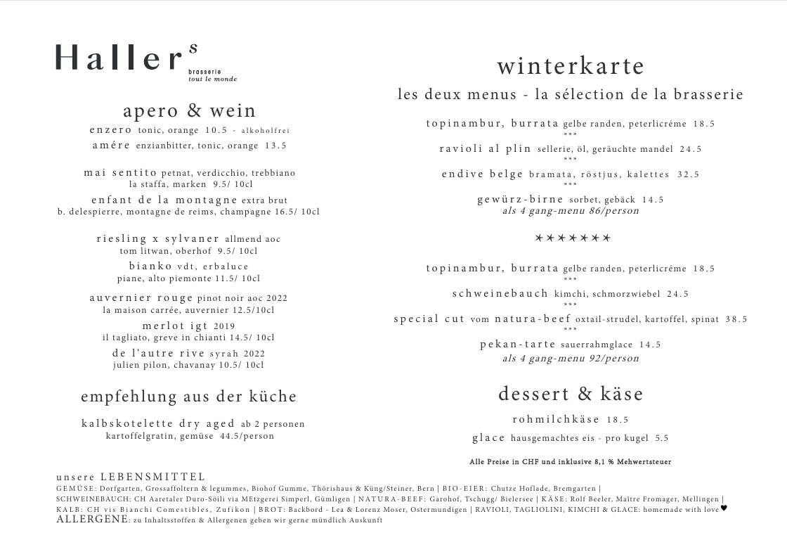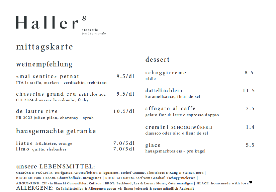 du kannst dich also zurücklehnen und mit gutem gewissen in die kulinarische welt von Hallers brasserie eintauchen.